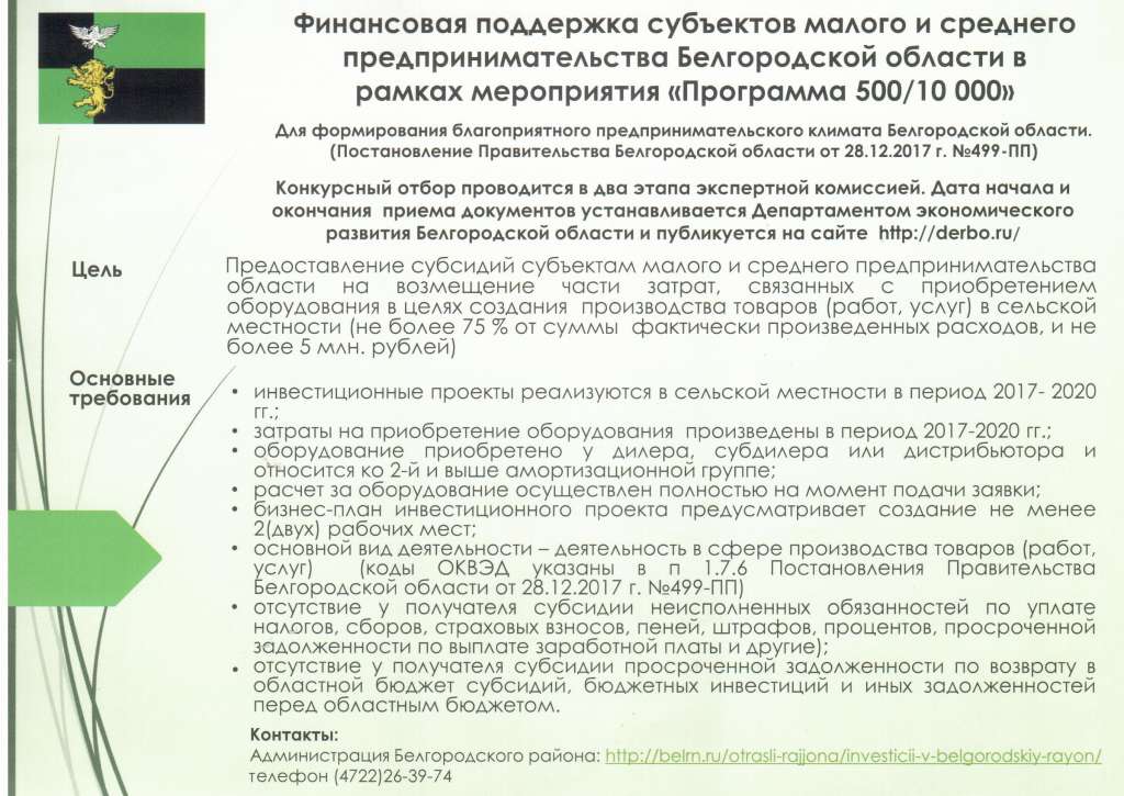 — в рамках подпрограммы по отбору сельскохозяйственных потребительских перерабатывающих и сельскохозяйственных потребительских сбытовых кооперативов, потребительских обществ для участия в мероприятиях по развитию сельскохозяйственной кооперации Белгородской области;