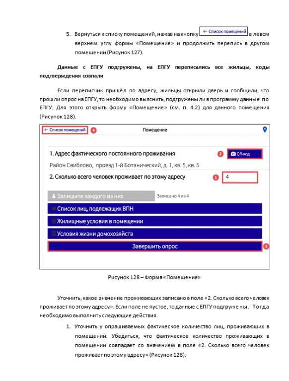 Опрашиваемый проживает в этом помещении, а другой адрес указал по ошибке. В этом случае следует попросить респондента зайти в личный кабинет портала Госуслуг, проверить адрес в вопросе 1 и заново отправить переписные листы с портала Госуслуг, исправив в вопросе 1 адрес на правильный. Записать в комментарии к помещению информацию по числу лиц, их полу и возрасту, подтвердить с ее помощью позже коды подтверждения, которые поступят после корректировки адреса на Госуслугах.