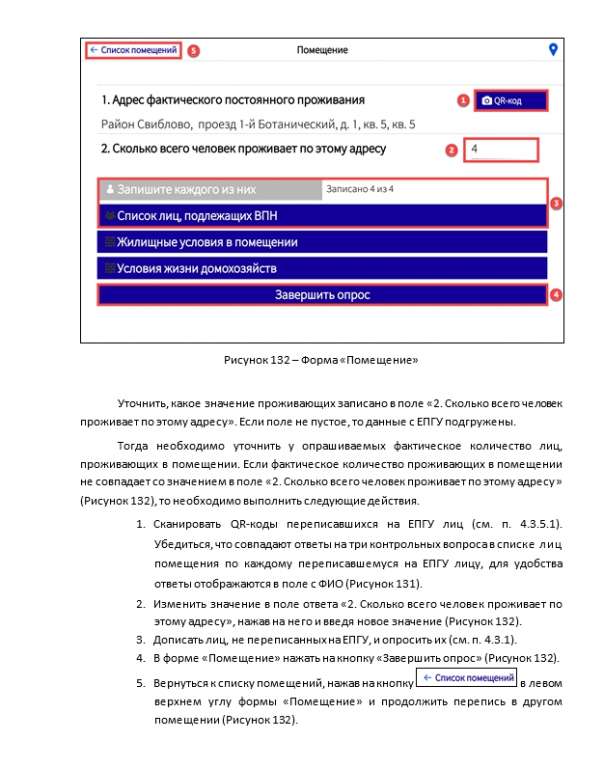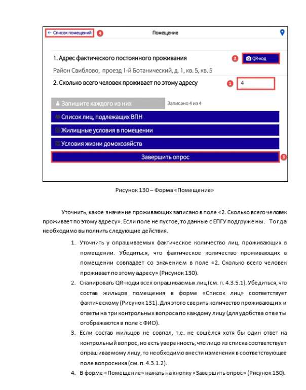 Лица действительно живут и переписались в другом помещении, а текущее помещение открыто по ошибке. В этом случае нужно еще раз перепроверить реквизиты искомого адреса, добавить в список помещений другое помещение и отсканировать туда QR-код. В текущем помещении убедиться, что вопрос 2 по количеству проживающих лиц пуст и помещение в статусе «Опрос не начат».